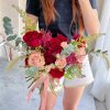 Fresh flower bouquet shown in the picture is hand size.