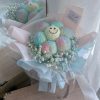 It contains 3 stalks of sunflower, chamomile, smiley graduation pingpoong and eucalyptus leaves.