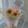 It contains 3 stalks of sunflowers + 2 bunny graduation pingpong, roses, chamomile, eucalyptus leaves and 10 inches bobo balloon.